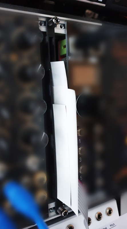 Alcove is a simple "module" similar to a blank, but provides a 50mm deep slot where you can store various manuals or cheat sheets for other modules. The module is only 1 HP in width, so it can be fitted where there is a small gap in your rack.