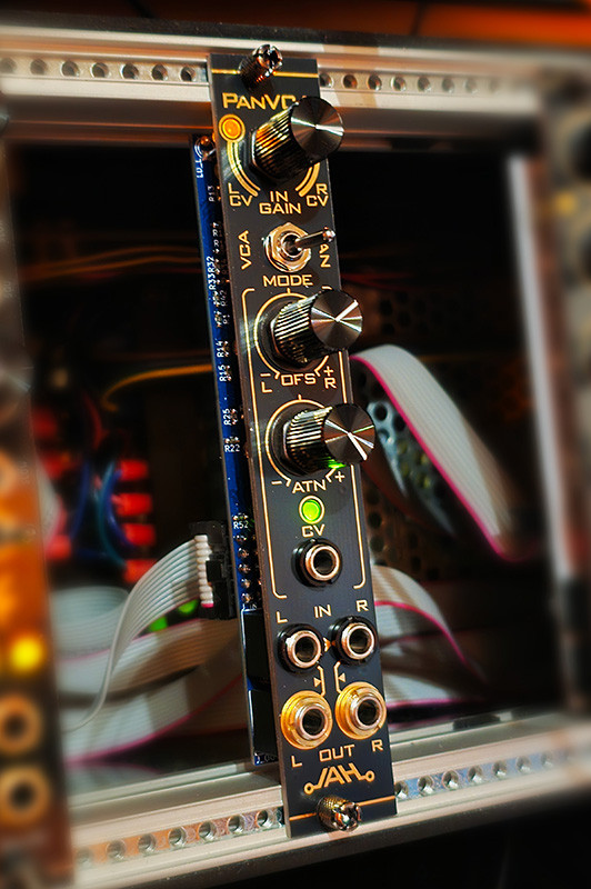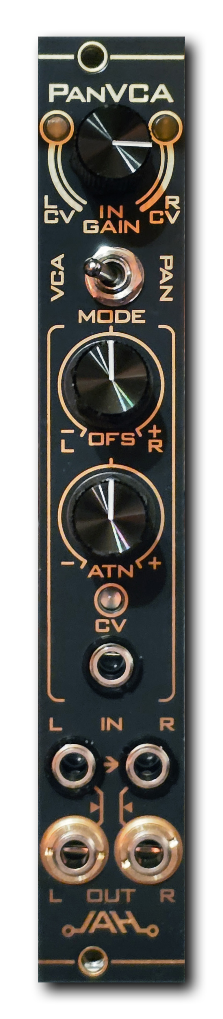 PanVCA is two modules in one: a stereo VCA and a Panner, combined with an attenuverter knob for the CV signal, and a full range offset knob. The mode can be changed with a flip of the dedicated MODE switch. PanVCA is a spiritual successor to the Avalon Harmonics iVCA, significantly improving on its functionality but keeping the classic transistor circuit. Features a golden (ENIG coated) panel.