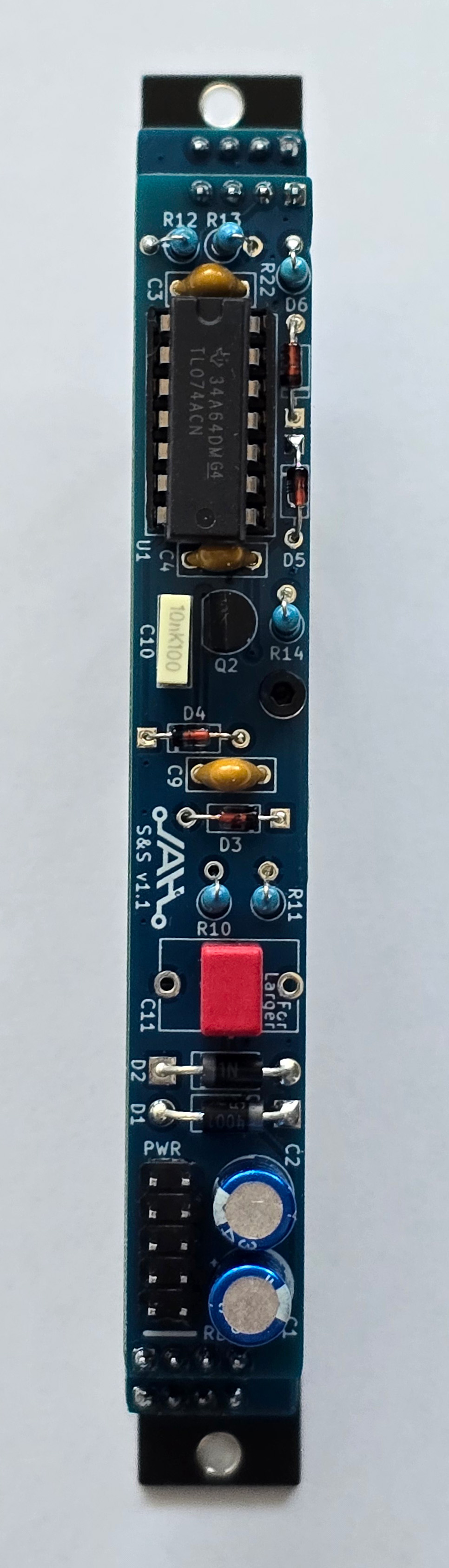 NOTE: New models of S&S use a smaller 2.2uF capacitor for slewing. This allows the slewing knob to have more sweet spots in lower ranges. Additionally, the module has a considerably smaller depth.